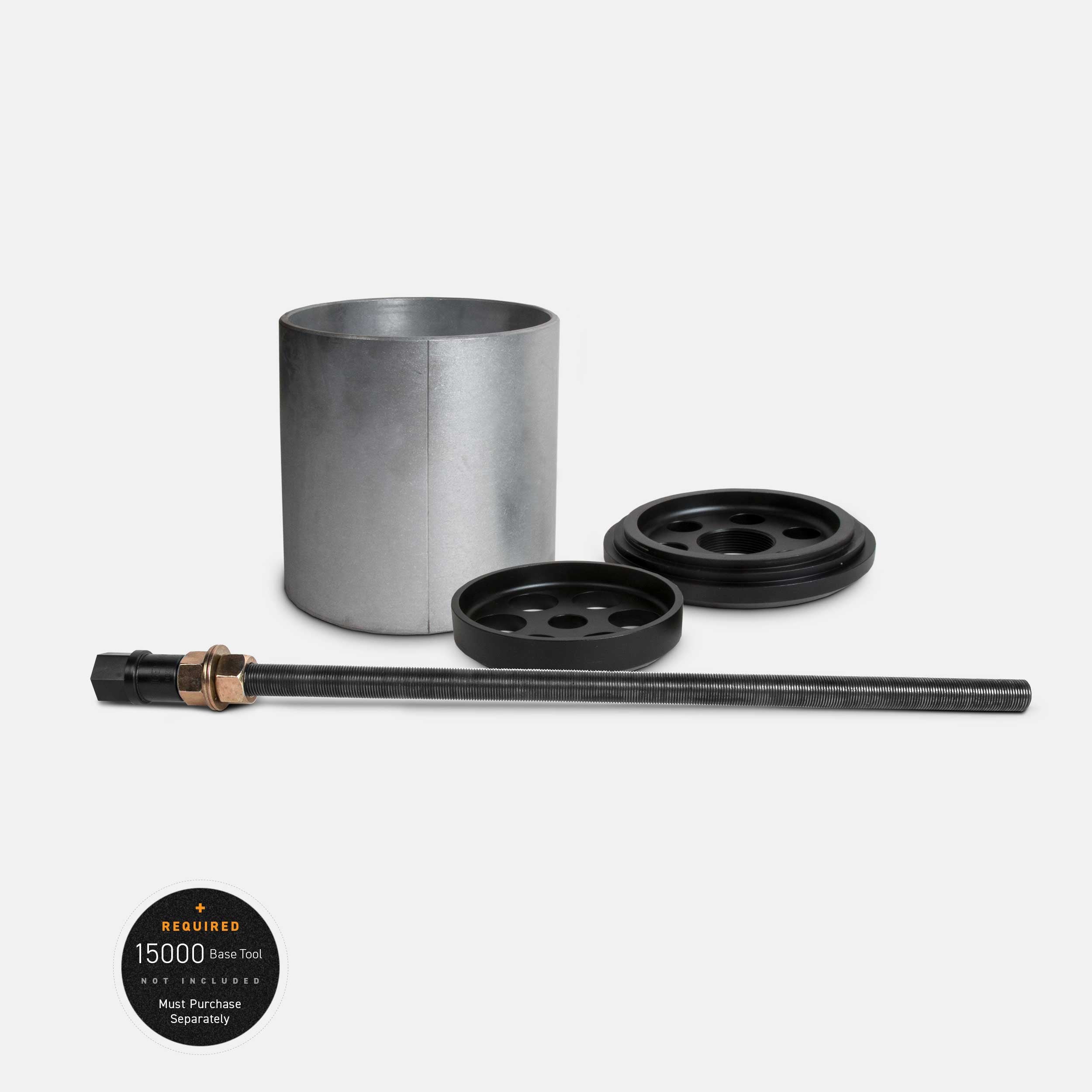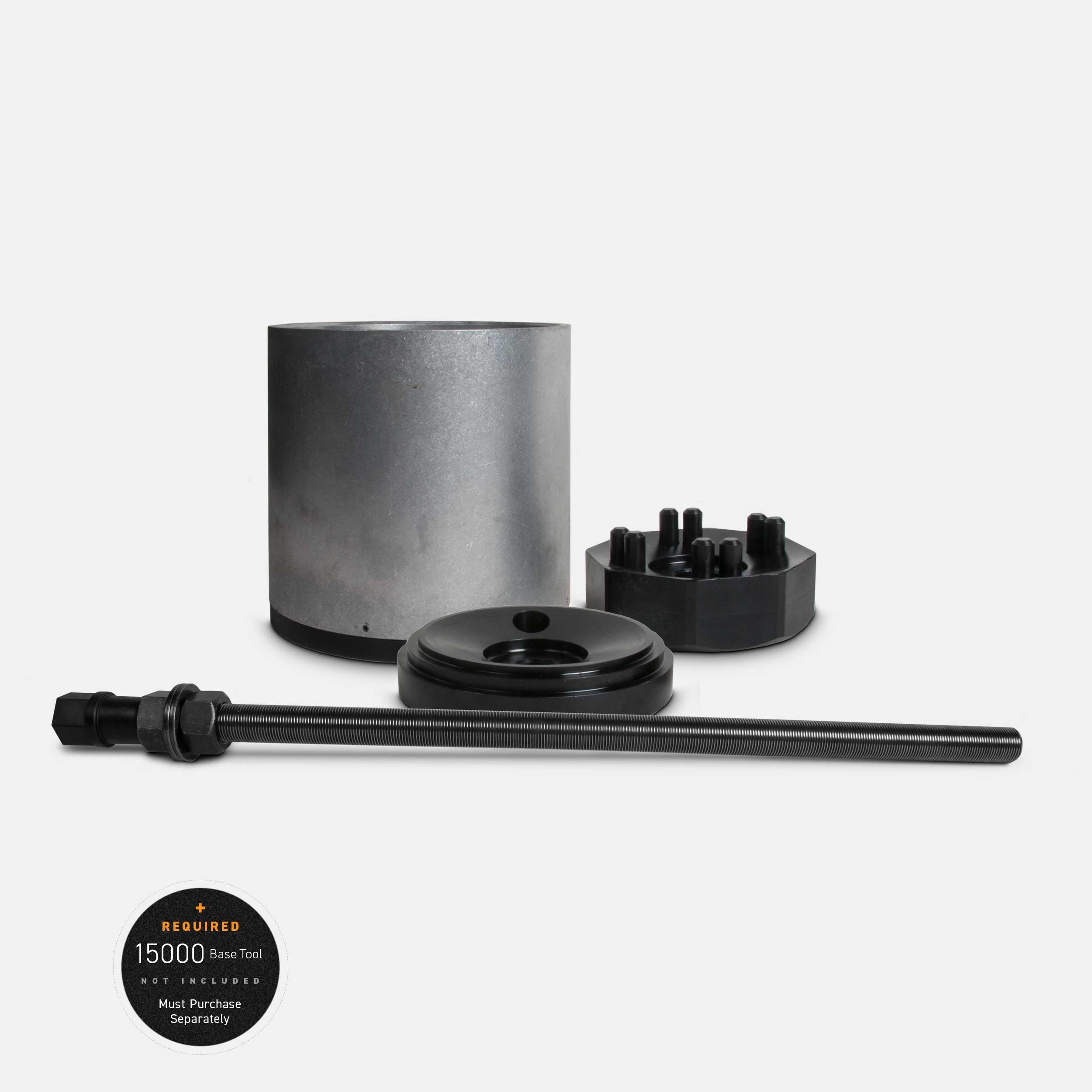 The 15000 Pin and Bushing Base Tool, together with one or more adapters, eliminates time-consuming, labor-intensive and costly processes; technicians are no longer required to remove the suspension, haul it to the shop press or reassemble it to the vehicle.